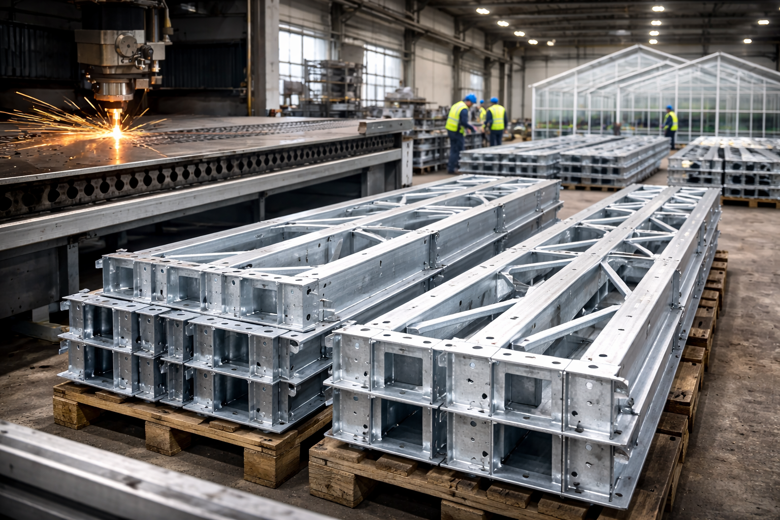 Kovomont Group zabezpečuje výrobu oceľových konštrukčných prvkov pre sklenené skleníky s dôrazom na rozmerovú presnosť a opakovateľnosť. Využívame moderné laserové technológie na delenie materiálu, čo umožňuje presnú výrobu jednotlivých dielcov podľa projektovej dokumentácie.