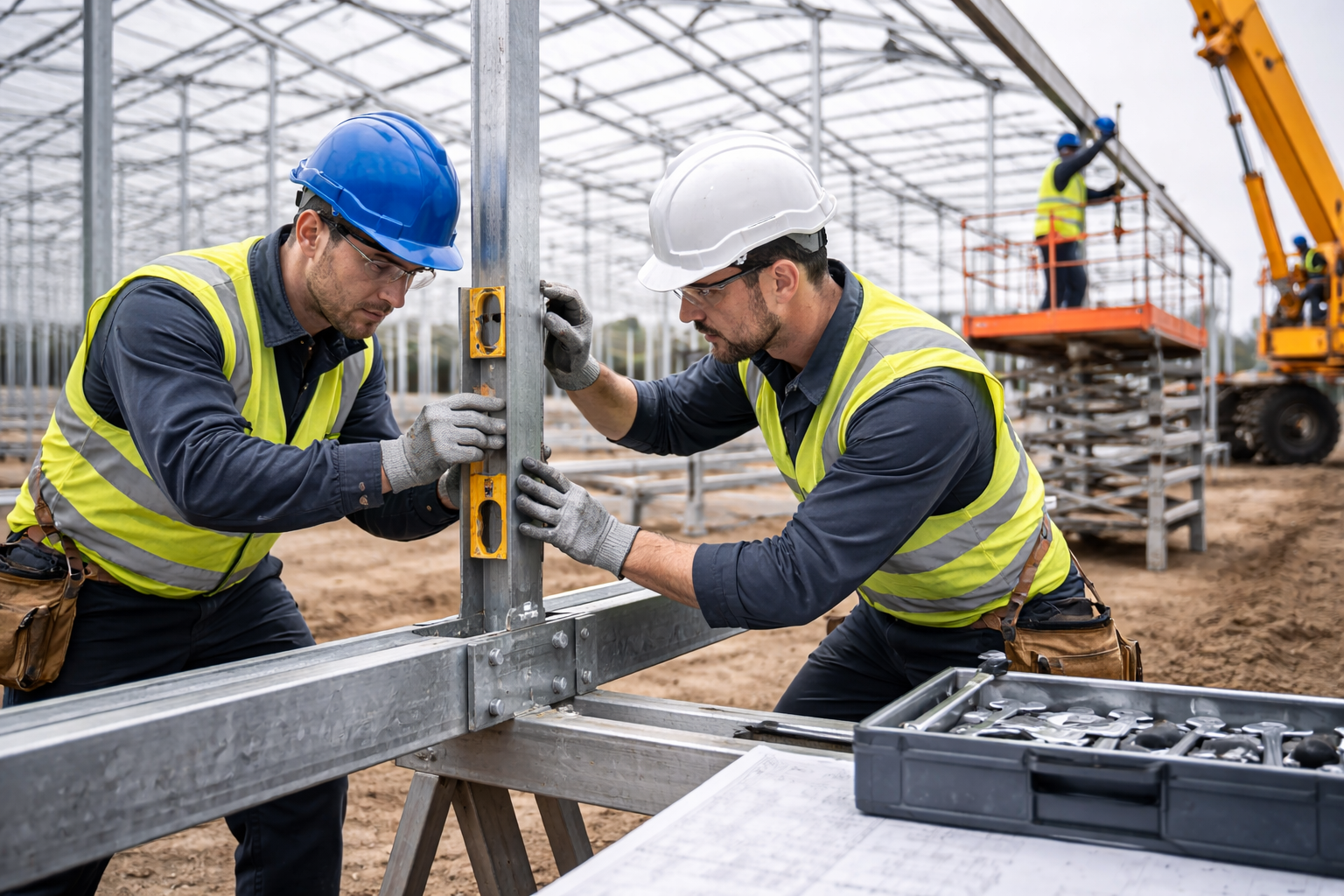 Zhotovené komponenty predmontujeme do podsestáv a kompletizujeme nosnú konštrukciu priamo na mieste stavby. Montáž prebieha modulárne podľa projektovej dokumentácie s dôrazom na lícovanie, kolmosť a geometrickú stabilitu.